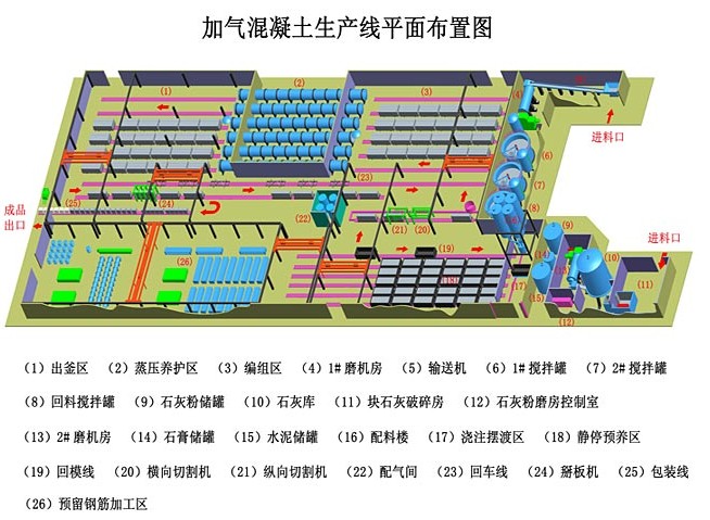 山西加氣混凝土砌塊設(shè)備工藝流程 工藝流程: