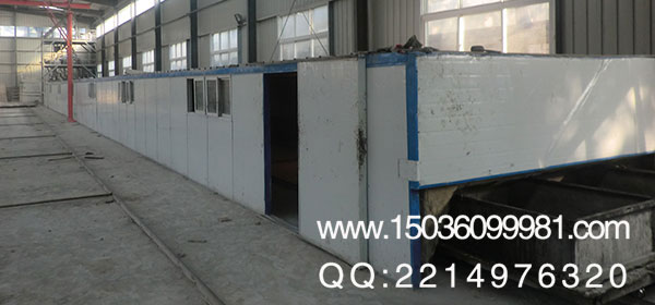 澆注好的模具由頂車機(jī)將其推入到靜養(yǎng)房?jī)?nèi)進(jìn)行初期養(yǎng)護(hù),靜止若干小時(shí)后就可以進(jìn)行脫模。