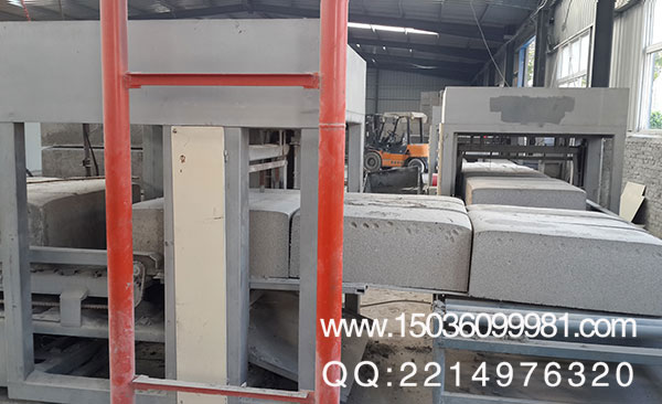 將具備一定強(qiáng)度的發(fā)泡混凝土塊與模箱分離,混凝土塊可進(jìn)行切割,模箱由回車道返回繼續(xù)澆注。