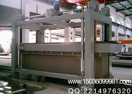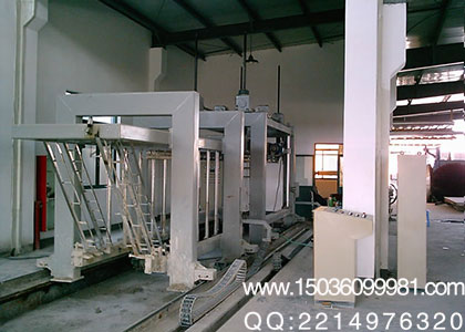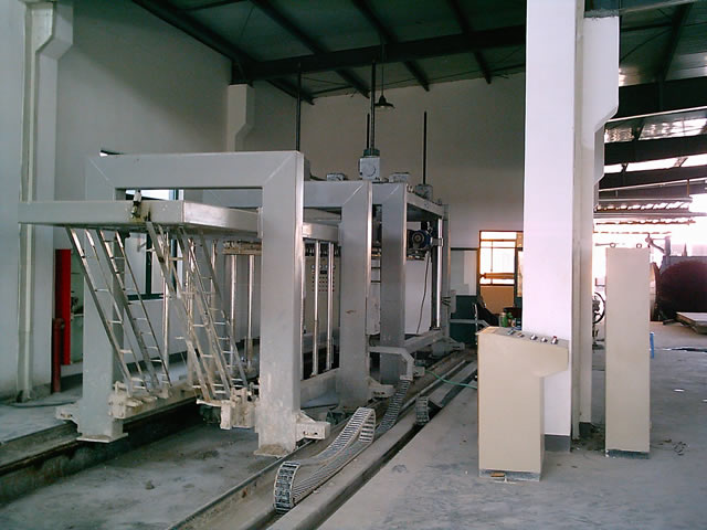 ?。?)小車行走:預(yù)養(yǎng)好的坯體帶??罩蟹D(zhuǎn)90度,然后將坯體放在切割機(jī)上,由脫模機(jī)構(gòu)脫去模框。然后水平切割車進(jìn)行水平切割,水平切割好后,橫切小車定位自上而下進(jìn)行垂直切割,切割好后橫切小車復(fù)位,吊起坯體,水平切割車復(fù)位。